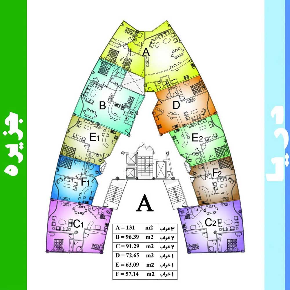متراژ واحدهای برج دیپلمات کیش به صورت زیر می باشد: